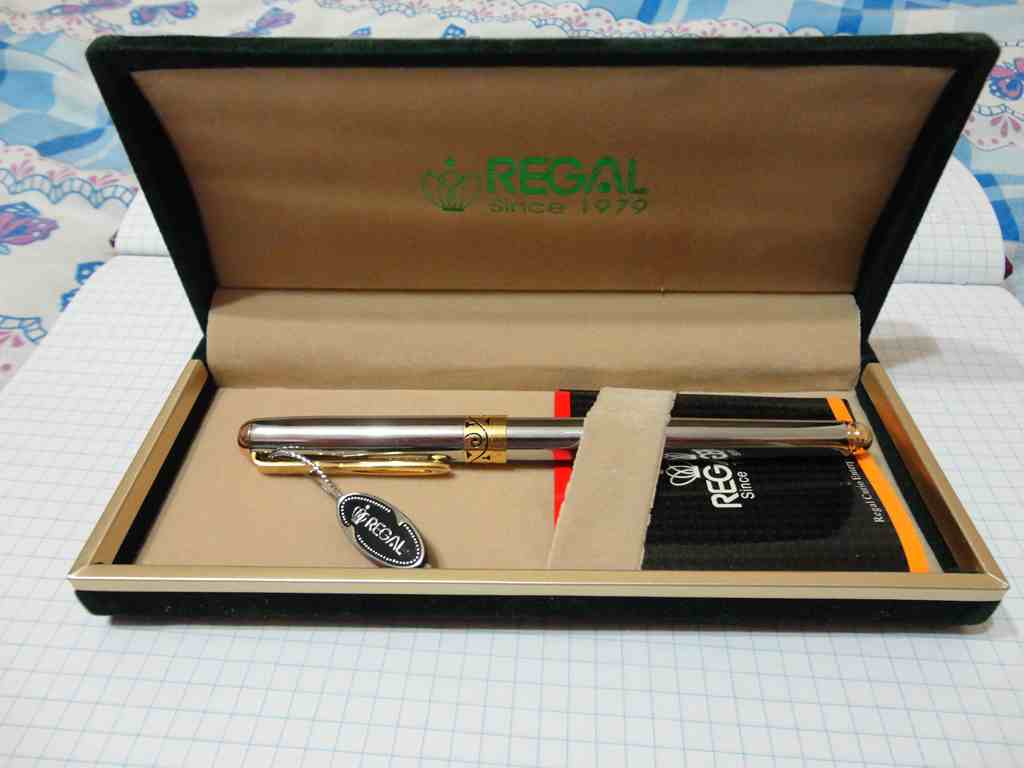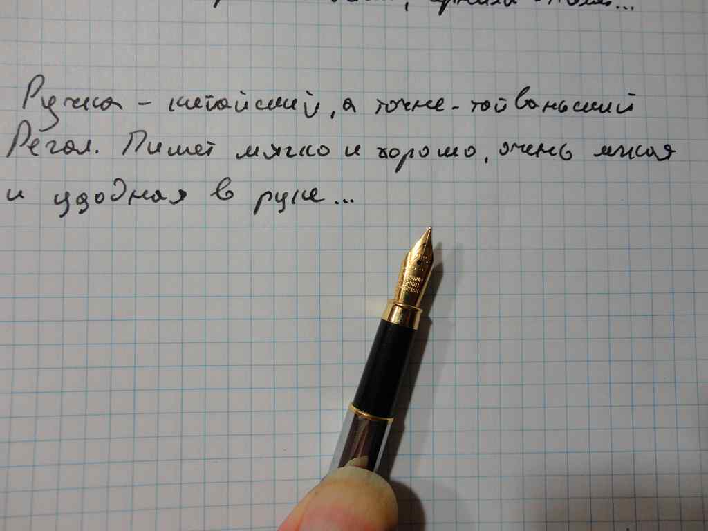 Итак: Регал. Тайваньский. Ручка хороша всем, неплохой дизайн, хорошее, мягкое перо, коробка подарочная. Минусов нашел 2: тонкий корпус (в руке неудобно лежит) и слабая пластиковая резьба на месте навинчивания барреля (внутри резьба жесткая, с заусеницами, наверное только одним метчиком нарезали )