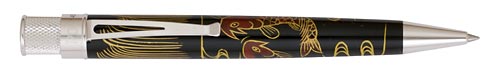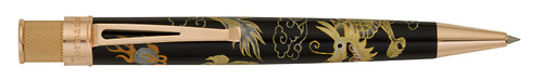 Марка, производящая данные ручки работает только на внутренний американский рынок и называется РЕТРО51.Корпус выполнен из эбонита и декорирован в японской технике МАКИ-Э, все остальные составные части металлические, в "Драконе" - покрытие чистым золотом, остальные, полагаю, родий. Данная лимитированная серия базируется на их "знаменитом в узких кругах" корпусе ТОРНАДО. Роспись по каждой из этих ручек выполняется определенным мастером (для каждого года- свой и его имя выгравировано на ручке, рядом с номером) в течении 4-х месяцев, путем последовательности "удивительных действий" и составляющих Красоту этого декорирования. Очень удобная форма и вес для длительного и комфортного письма, а стержни подходят паркеровские... Помимо лимитированности и "престижности декора" приятным фактом, бесспорно, остается редкость даноого пишущего инстремента для наших широт