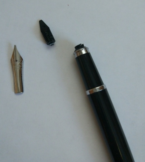 По поводу ручки: пошел я погуглить этот инструмент на посматреть покрупнее на перо и фидер, фото не нашел, но цену нашел - 14дол на Амазон. Поэтому, если ручка вам действительно дорога как память, а не инструмент,то лучший вариант, купить туже модель новой, вытащить из нее целый фидер и переставить в ваш памятный экземпляр, возможно и перо,остальное останется на запчасти. Для того чтобы пойти более длинным путем нужно делать более качественные фото, доставать полностью фидер и измерять его штангелем + делать эскиз, если он неправильной формы и тогда, может быть, кто-то сможет помоч. Поскольку система картриджно-конвертерная, то возможно подойдут китайские Джинхао, но это лишь возможно, на данным момент не достаточно информации.