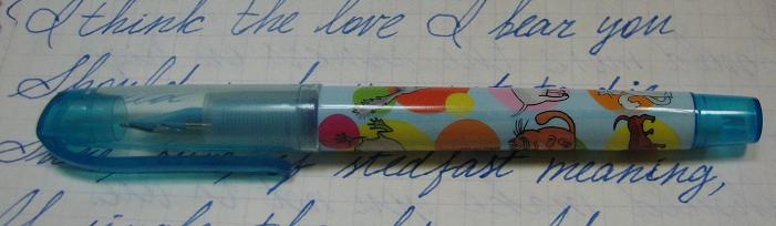 Школьная ручка с веселеньким оформлением, перо - F. Заправка - к/к.