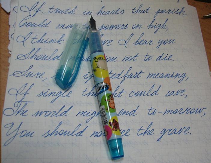 Фотографии ручки и образца письма ниже.