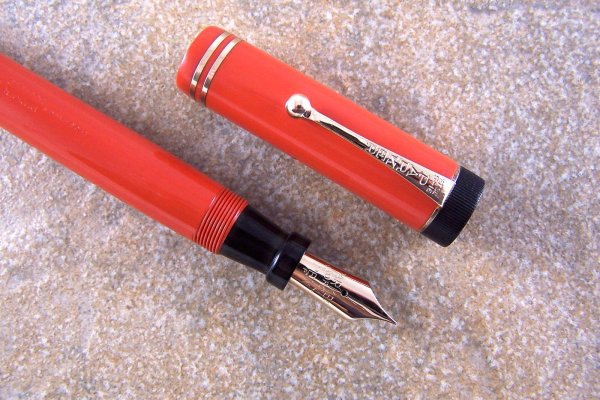 Нашел на ebay свою мечту - Parker Duofold Big Red, красно-оранжевую, с двумя колечками на колпачке, по всей видимости, 20-х годов. Ручка восстановлена.