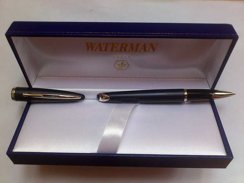 1. waterman carene deluxe перо f, полный комплект (коробка-бумажки-картридж-конвертер).
