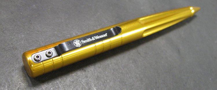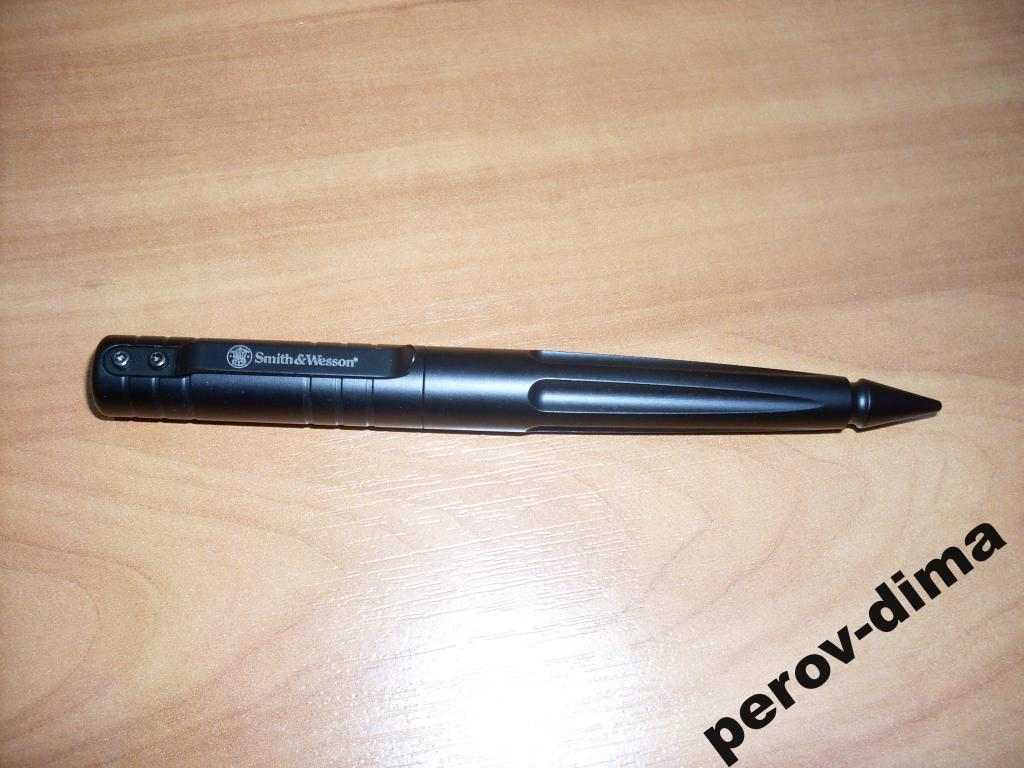 Тактическая ручка Smith & Wesson черного цвета, из твердого анодированного алюминия. Она удовлетворяет той же самой цели как другие тактические ручки, которые являются в 2 раза дороже. Она пишет очень гладко и может использоваться как инструмент самообороны, как стилус для КПК.