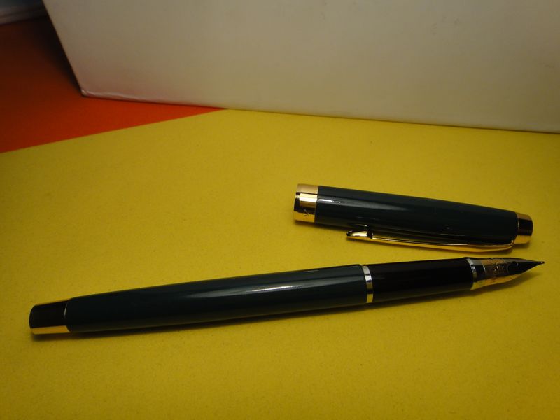 1. Перьевая ручка Rotring Rivette, Германия. Полупрозрачный насыщенный-зеленый цвет корпуса из качественной пластмассы (на свет можно определять остаток чернил), оригинальный удобный клип, фиксация колпачка жестская, размер в закрытом состоянии -140мм, с надетым колпачком – 147мм. Картриджно-конвертерная система заправки, еврокартриджи (как Ватерман, см. соответствующую тему форума). Легкая.