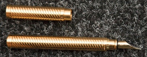 А перо - золотое? Тогда напильником по перу - и проверить кислотой. Если золото - родная... |