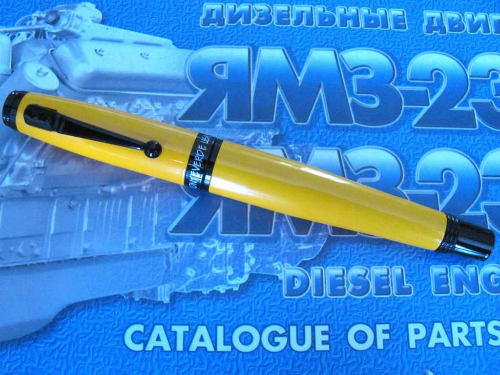 Просматривая различные сайты по ручкам я обратил внимание на эту американскую модель.Скажу сразу - ничего ошеломляющего,простая бюджетная ручка,но...Черное воронёное перо,привлекательный дизайн,удивительный(как мне показалось) контраст жёлтого с черным...Хочу! И дочка прислала.Хорошая упаковка,пару буклетиков,3 картриджа и конвертер в комлекте - очень даже неплохо.Удивил сразу вес ручки - 40 грамм,без колпачка - 30 грамм,берёшь в руку - маешь вещь.Конвертер на резьбе,раньше не встречал,хотя знаю,что у некоторых производителей есть такой плюсик.Вылет пера составляет 23 мм-считаю это положительным моментом.Длина ручки без колпачка 130 мм,с надетым на баррел колпачком 155 мм.Однако писать с колпачком неудобно - нарушается баланс,ручка как-бы сваливается назад.Перо удачное - гравировка логотипа,широкие "крылья".Выбрал "F",пишет толще,чем японские "F",но удовлетворён.Подача умеренная,хорошо скользит по бумаге (чернила Platinum Carbon),правда наблюдаются пропуски,но думаю,что через пару дней интенсивного письма всё будет хорошо.Что ещё понравилось? Закручивание колпачка.В тот момент,когда почти закрутил колпачок до конца, раздаётся щелчок и происходит что-то вроде фиксации...Интересное техническое решение,как это скажется при дальнейшей эксплуатации не знаю,посмотрим.Вообщем,хорошая ручка,на работе буду использовать...