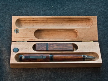 Комби. Ручка-карандаш в том же аризонском айронвуде. Футля уже получше, бук и тутовое дерево. Облоготиплено. :-)