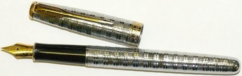 Parker Sonnet , производства Франции, (более детальное название модели, к сожалению, не помню за давностью лет) в хорошем состоянии, использовалась по назначению, потом 2 года лежала в шкафу. В футляре, но без документов. Перо размера F позолоченное, в идеальном состоянии, пишет легко и свободно. Отделка колпачка – позолота. Отделка корпуса ручки – предположительно никеле-палладиевое покрытие либо серебро – точно не знаю (покупал не отделку, а предмет для письма). На золотом пояске колпачка и клипсе имеются потёртости.