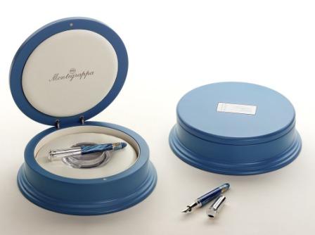 Упакована в элегантную, покрытую лаком деревянную шкатулку синего цвета и в комплекте подставка из Муранского стекла.
