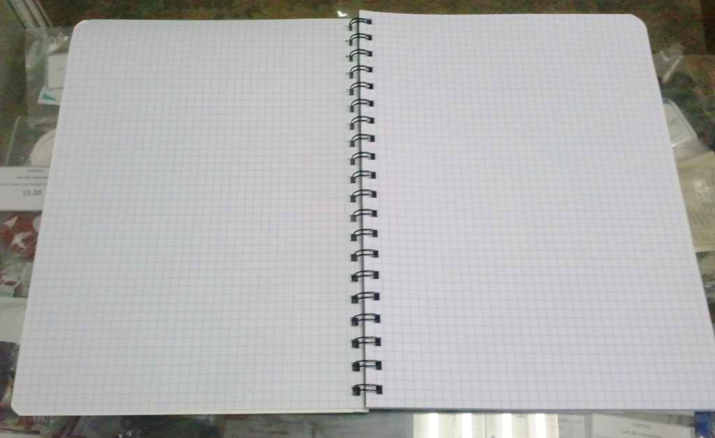Мне понравилась вот такая тетрадь.Пружина,разворот,отличная бумага для письма пером.Формат чуть меньше,чем А4 - для сравнения сфотографировал рядом с другим блокнотом (на 3 см меньше по длине).Не сильно выделяющаяся клетка.