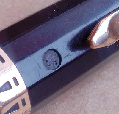 приобрел себе все-таки очередную "знаковую" (я к ним отношу старые ручки с характерной "изюминкой") ручку Eversharp Doric. Она требует ремонта. И в частности у нее потерян фирменный "gold seal". Это такой маленький кружочек из золота диаметром 3мм (см. фото). Оригинальная запчасть стоит $45 без пересылки. Но т.к. я не сильно ставлю высоко оригинальность именно этой штуки, то думаю об альтернативных решениях. Может ювелиры могут сделать такую штучку недорого?