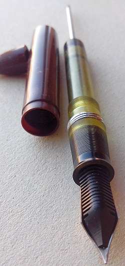 попробую завтра сфоткать останки c размерами. Оказалось это действительно редкая ручка выпускавшаяся только в 1948 году. Вероятно и фидер у нее был уникальный, его отдельное фото пока не нашел.