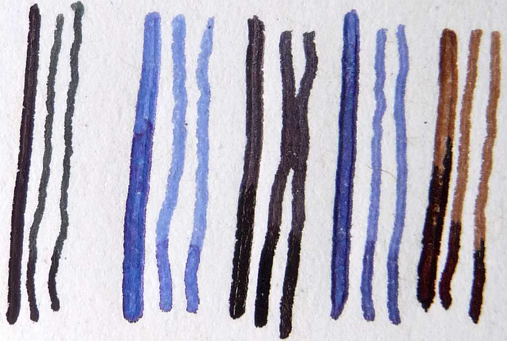 Спонтанно решил сравнить друг с другом чернила на "расплывание" (feathering). И вот сделал как бы тест из того, что было под рукой и заправлено. Но даже в таком виде получил для себя интересные результаты.