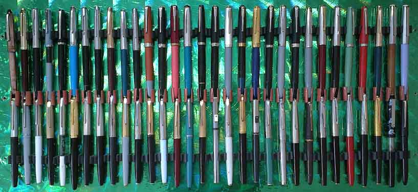 Думаю, нет необходимости разложить каждую ручку по частям. Без сомнения, все оригиналы: где с золотыми, а где простыми перьями. Все вычищенные, обновленные и готовые хоть сию минуту, набрав чернил, к письму.