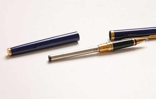 Такие есть 2 штуки. Модель не знаю, 100% оригинал, привезены из Франции, раньше были в коробках, но коробки потерялись. Немного бу, состояние очень хорошее. Внутри родные стержни, пишут, но тонко. Раньше писали толще. Или заканчиваются, или надо расписать. В жизни ручки более светлого синего цвета. Никаких царапин нет. Если протереть и положить в коробку будут как новые.