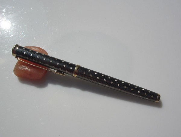 Классическая женская ручка, но мужчинам она тоже нравится. Корпус - золотистый металл с инкрустацией. Вес 20г. Длина с колпачком 13.2см, без колпчка - 12,5, толшина 10мм. Таких есть 3шт. Пишет красиво, я такой пользуюсь каждый день, практически не выпуская из рук.