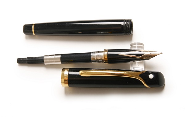 Корпус и колпачок - черный акрил с позолотой. Колпачок, завинчивается.