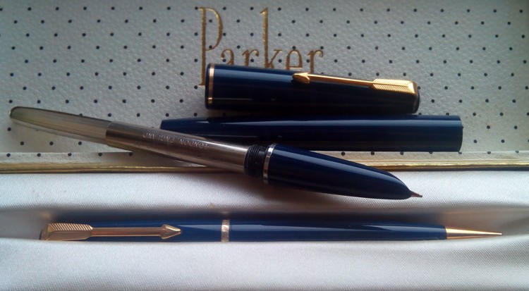 Ручка довольно легкая и вполне подходит для длительного письма. Обычно подача чернил у Parker 17 обильная для М-ки, но без сюрпризов в виде собирающихся на пере капелек чернил. По качеству письма мне кажется эта модель не уступает своему "знаменитому собрату" 51 модели, хотя и конструкция подачи чернил немного отличается. Перо золотое 14К, с хорошим слоем напаянного на кончик материала