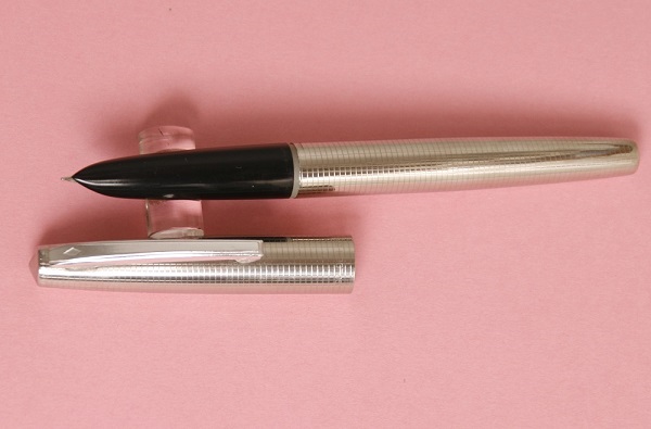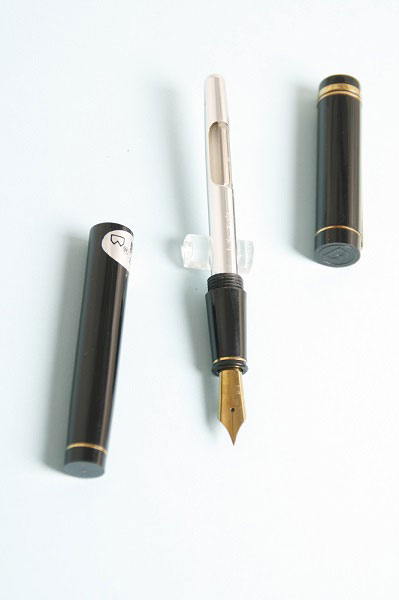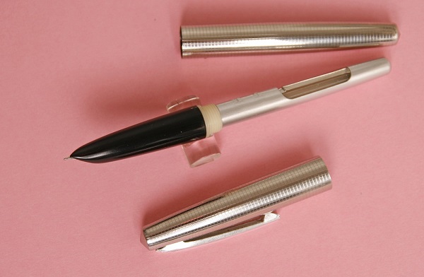 Одна из самых удачных и популярных моделей фирмы. Произведена в 80е годы. В наличии 4 цвета - бежевый, зеленый, бордовый и черный. Открытое перо - сталь с иридиевым наконечником, F. Пишет легко и гладко. Система заправки - пипетка. Длина в колпачке - 14,1см, длина без колпачка - 13,3см, толщина - 1,1см. Вес в колпачке - 19г, вес без колпачка - 12г.