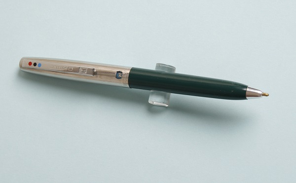 Внутри 2 древних стержня, которые работают по очереди - синий и красный. Они меняются при повороте. Мне кажется, что должен быть еще и третий, но его нет. Зато те, которые есть, отлично пишут. Ручка имеет очень колоритный вид из 70х-80х годов. Есть 1 шт. Цена 1200руб.