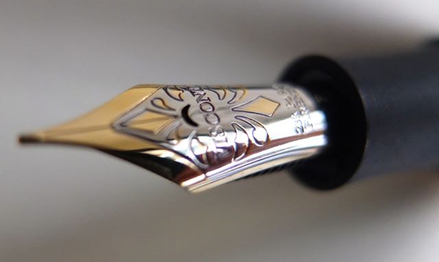 Скольжение великолепное по любой бумаге. Подача обильная (просто макал в чернильницу). Придраться не к чему короче