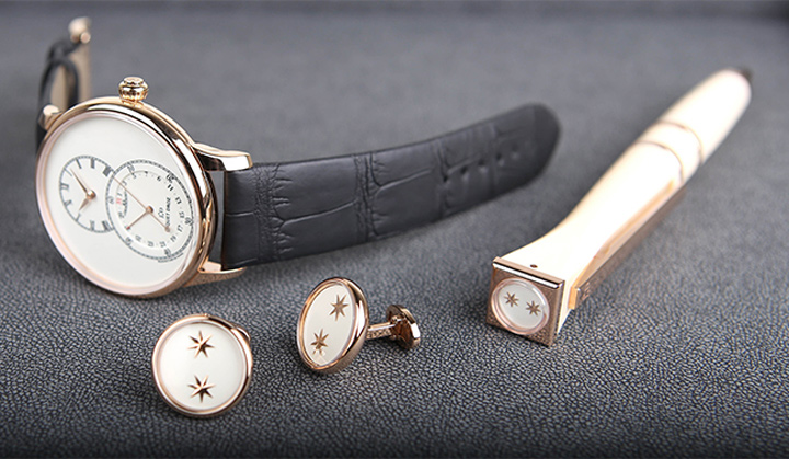 Коллекция авторучек Jaquet Droz Швейцарская часовая компания Jaquet Droz, известная во всем мире благодаря своим сложным часовым механизмам и автоматонам, представила наборы аксессуаров, включающие в себя запонки и авторучки. Ручки Jaquet Droz выполнены из черной смолы с платинированными элементами отделки, а также в варианте из смолы цвета слоновой кости с позолоченными элементами. Торец ручек декорирован двумя золотыми 18К звездами – эмблемой марки. Кроме этого, ограниченным тиражом из 88 экземпляров выпущена более эксклюзивная ручка Jaquet Droz, декорированная цветочным узором и выгравированным изображением птиц на опоясывающем ручку широком кольце. Рельефное изображение птицы, выполненное вручную из 18К красного золота, также украшает торец этой лимитированной версии ручек. Все ручки Jaquet Droz предлагаются в наборе с запонками, выполненными из золота 18К. |